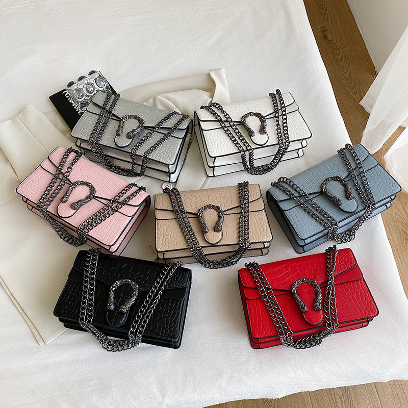 Crocodile pattern chain bag classic retro small square bag high-end shoulder messenger bag