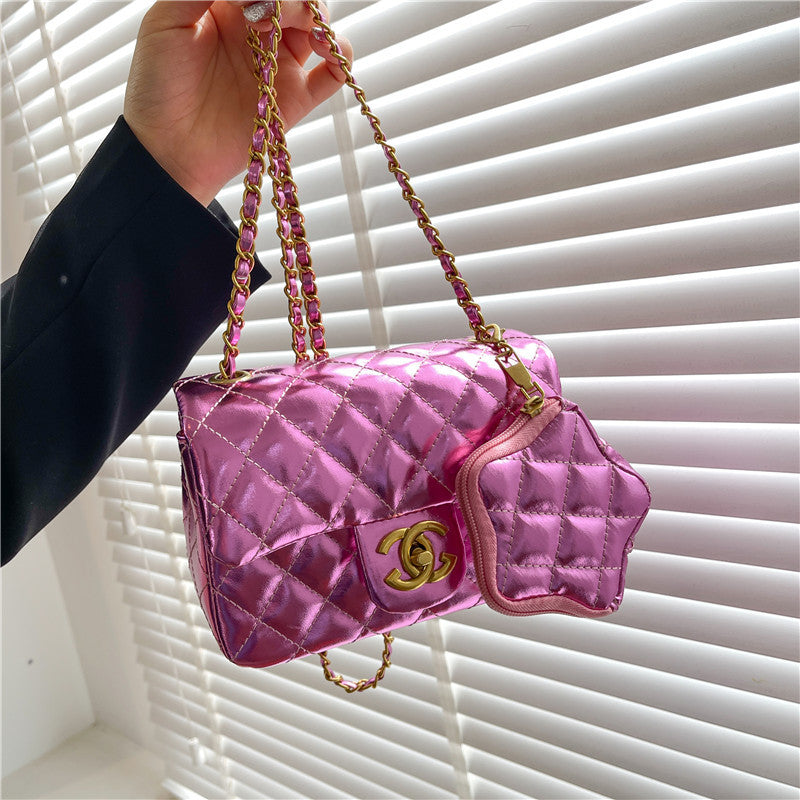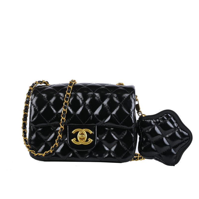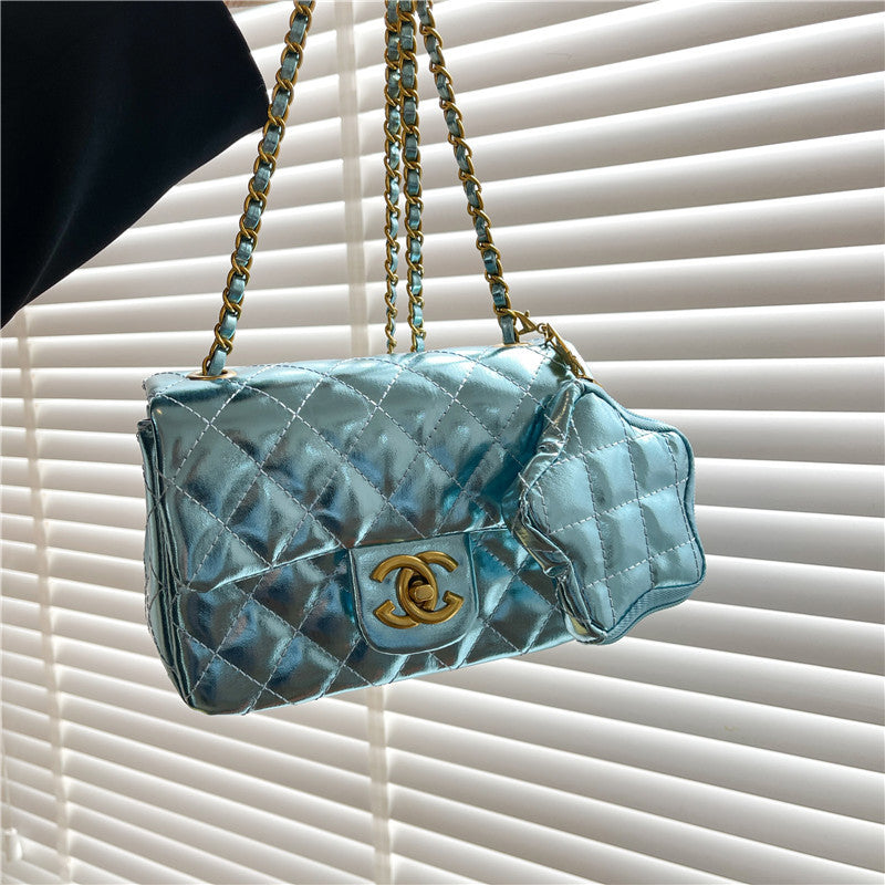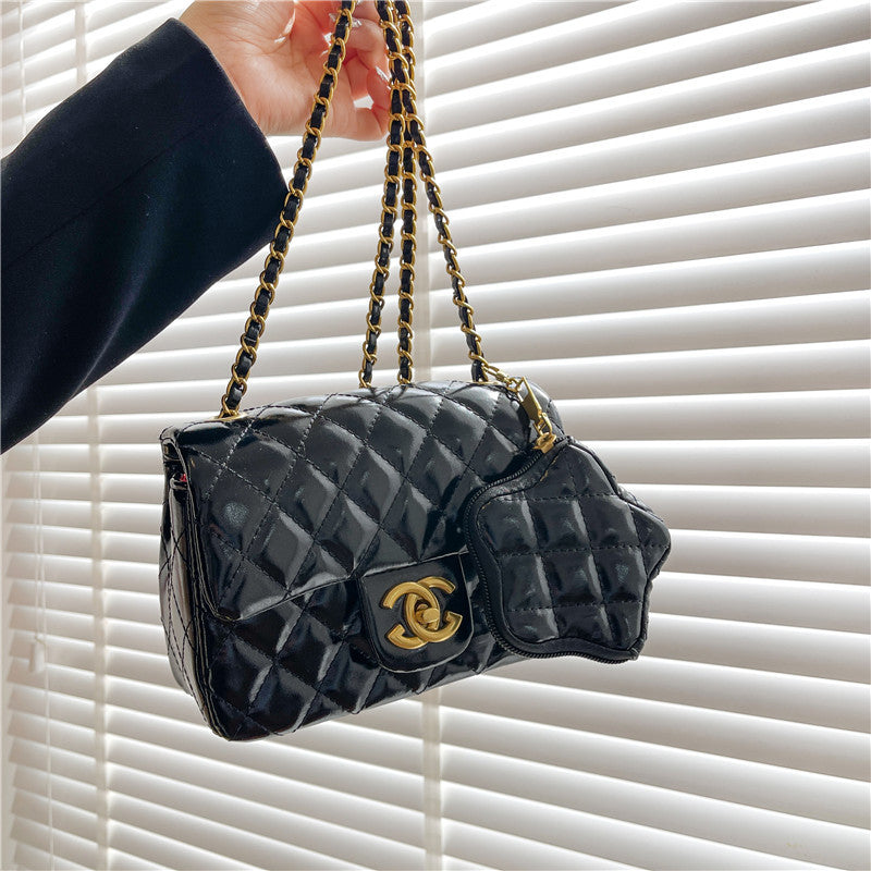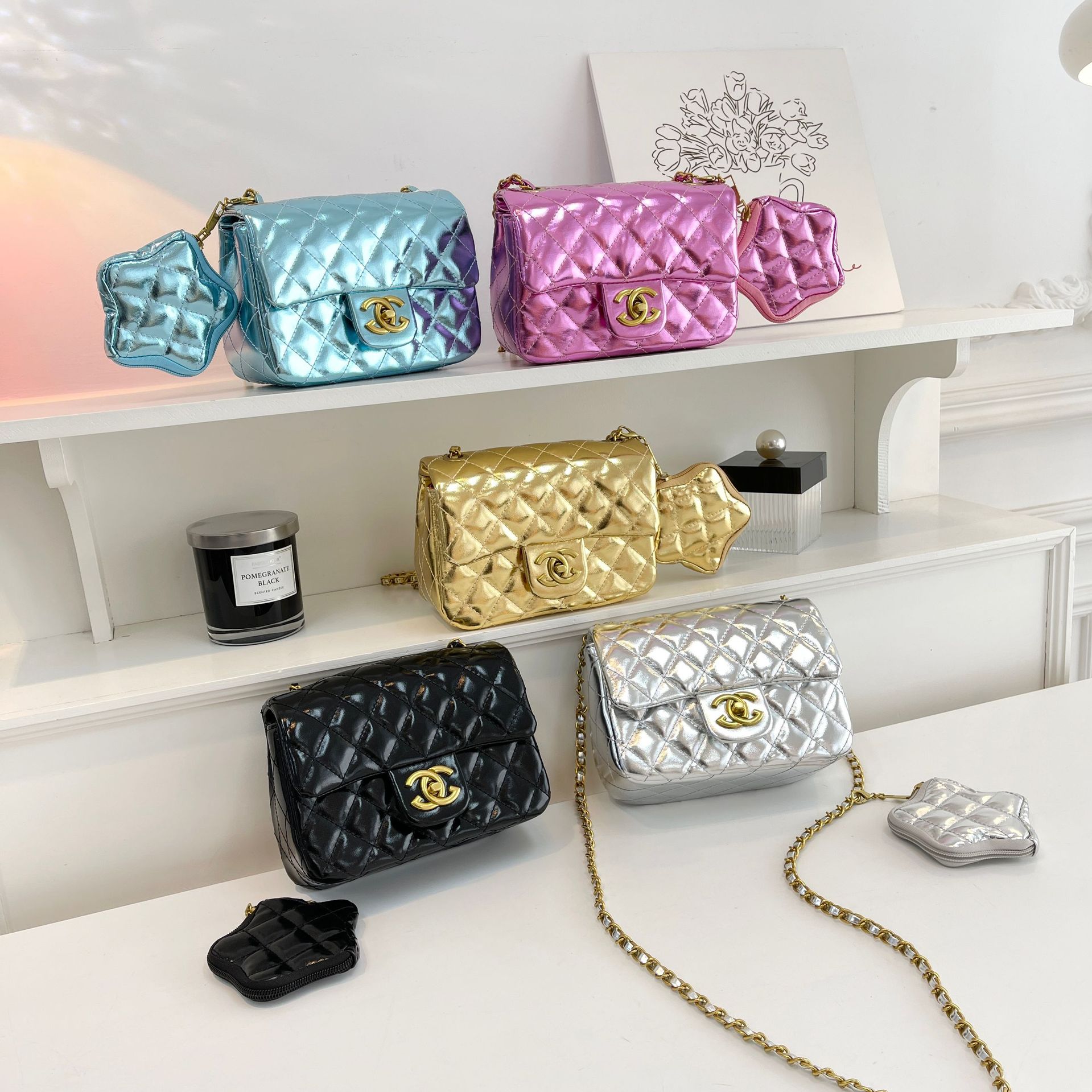 Chanel style new diamond chain patent leather star bag bright color fashionable crossbody bag