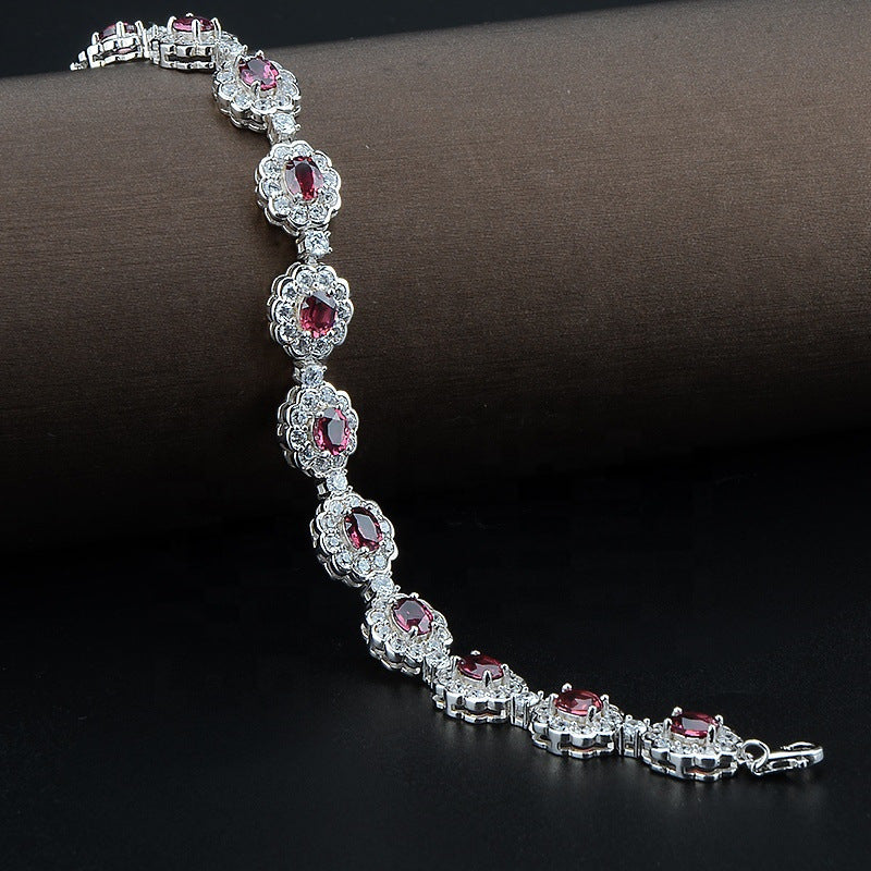 Fashion Ruby Bracelet Women Tennis Bracelet Valentine's Day Gift Flower Bracelet