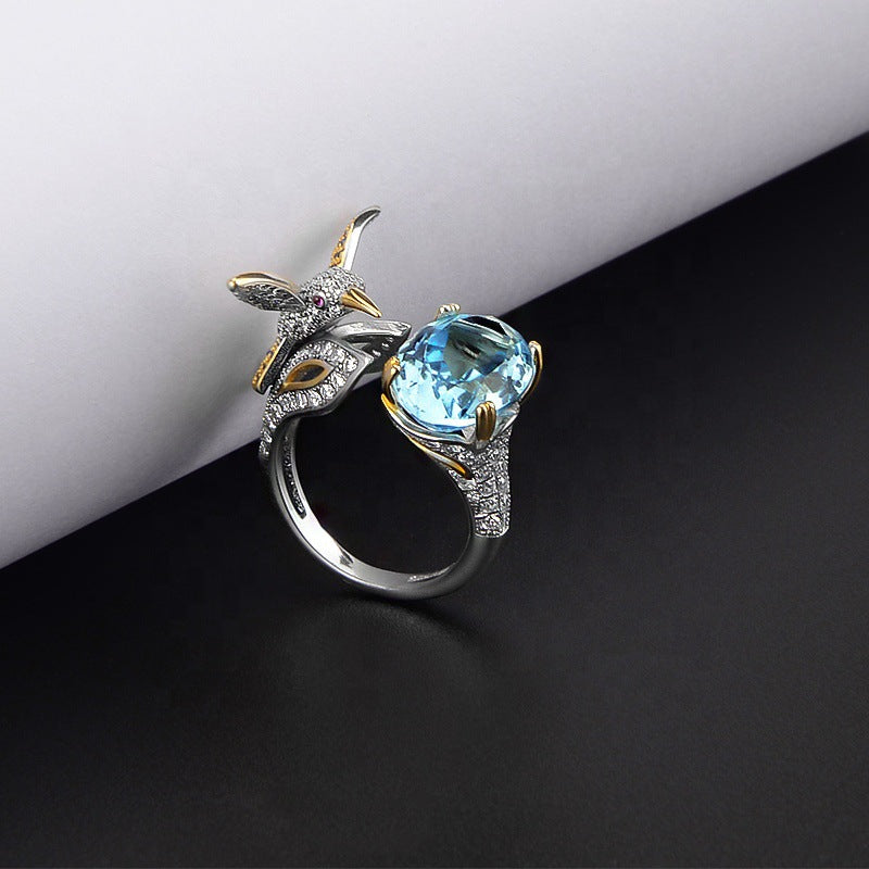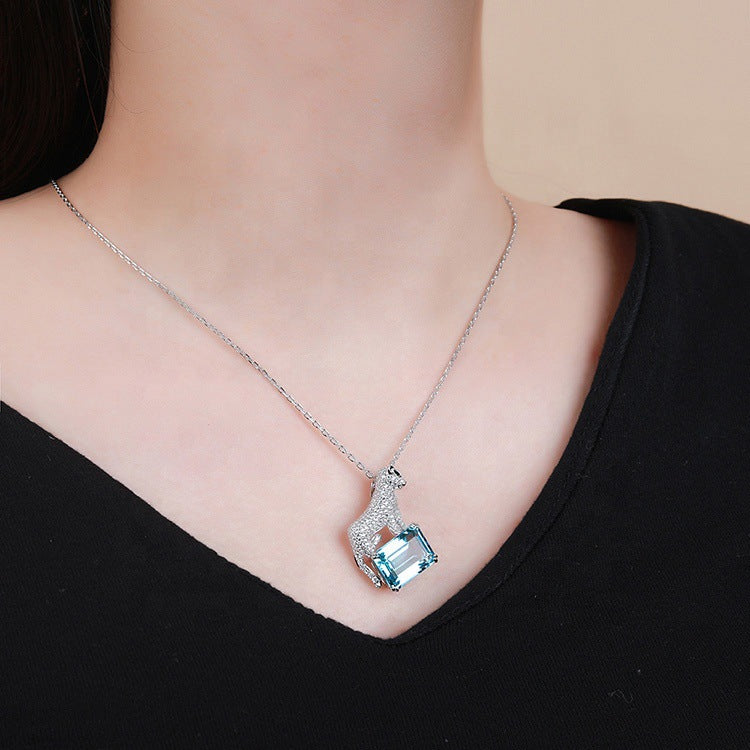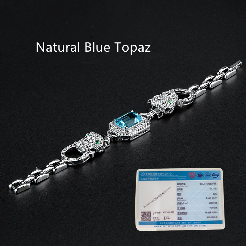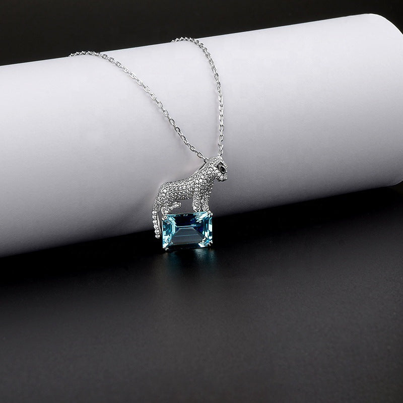 Topaz Snow Leopard Pendant Necklace Bracelet Ring Set