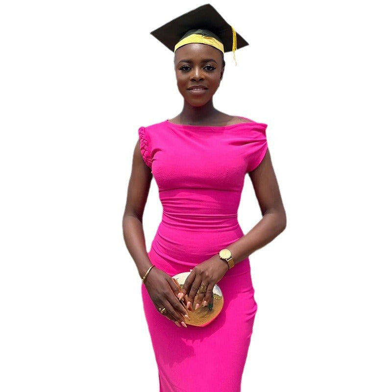 Braided dress off-shoulder sleeveless pullover long dress mid-length solid color pullover dress