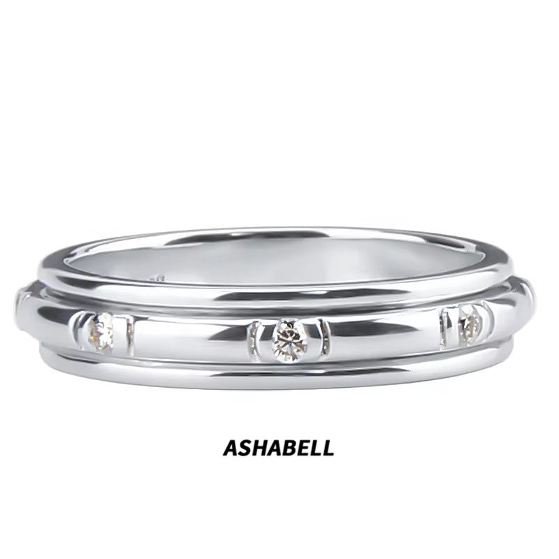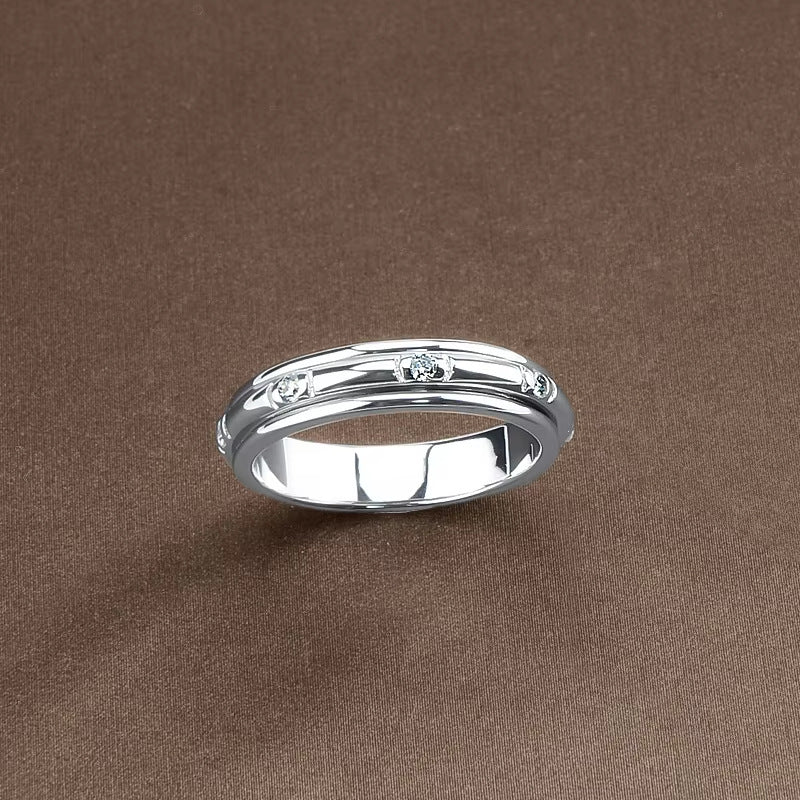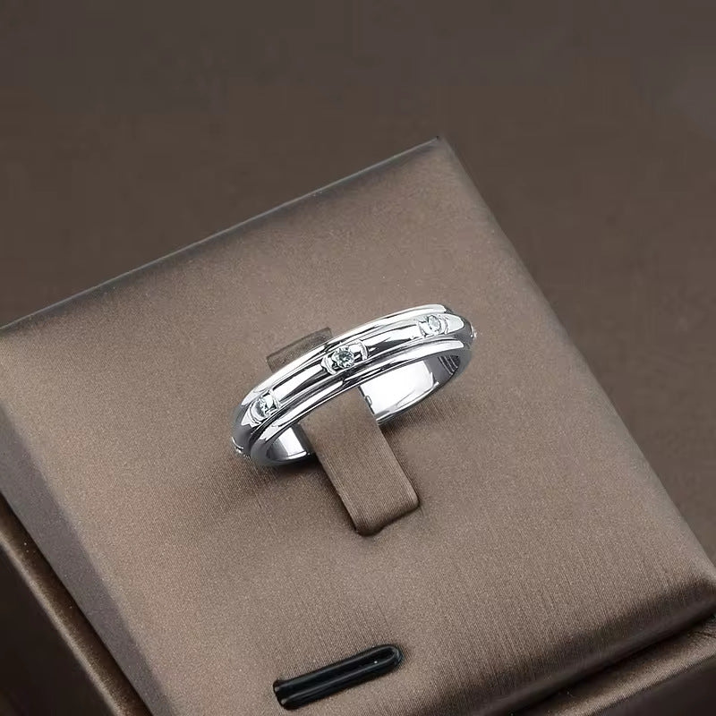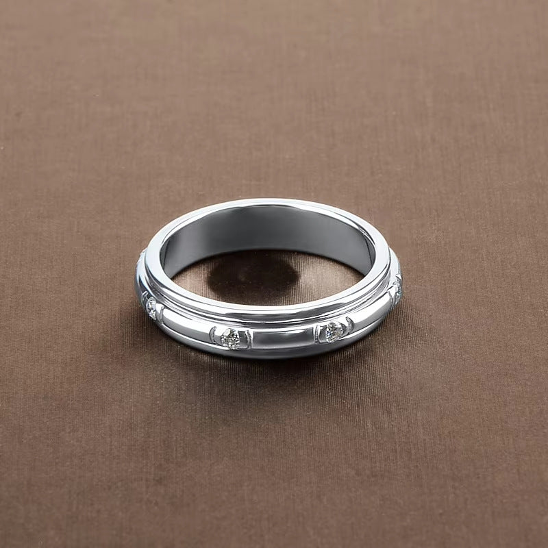 Diamond men's ring plated with 18K white gold, fashionable and atmospheric men's diamond ring