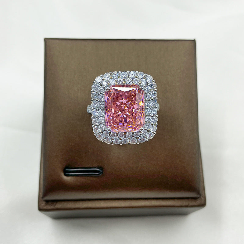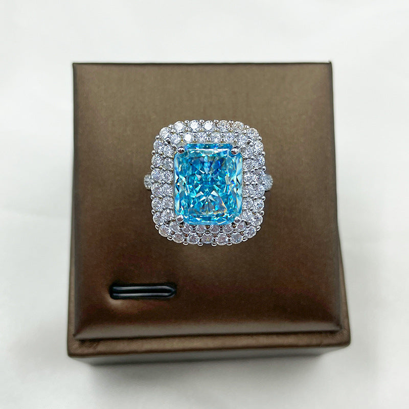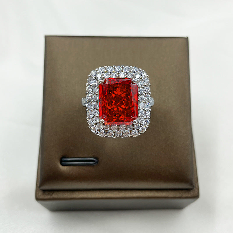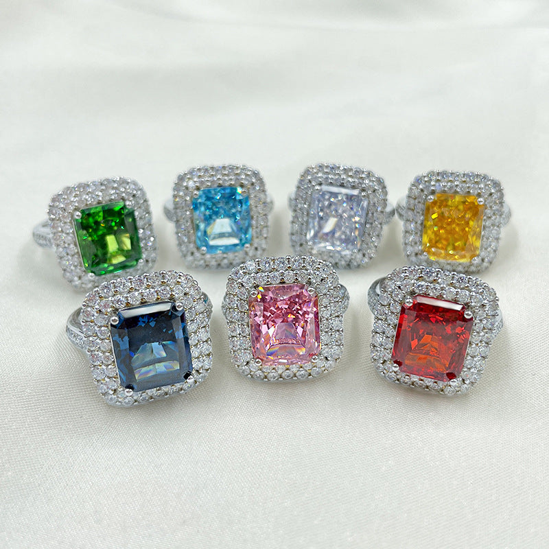 S925 sterling silver super shiny luxury full diamond colorful square ice flower cutting women's ring