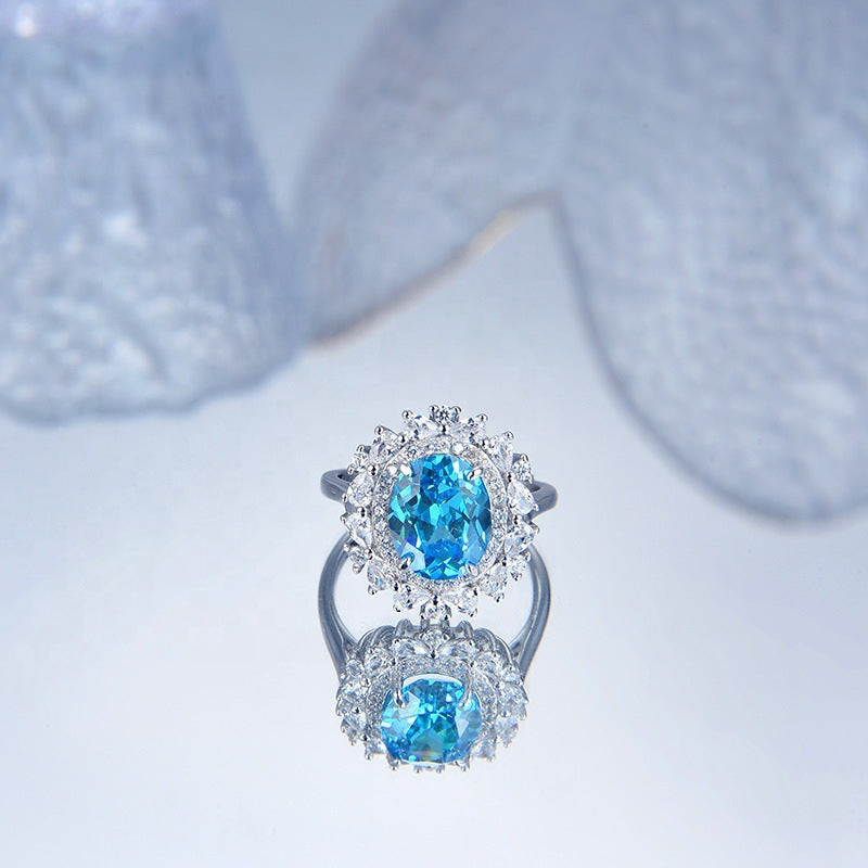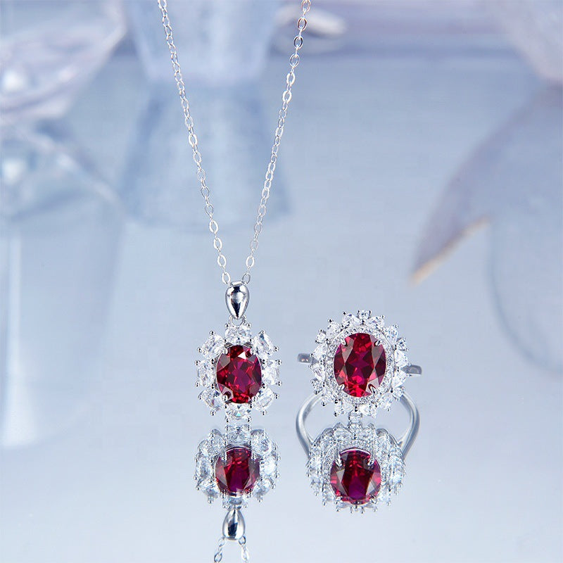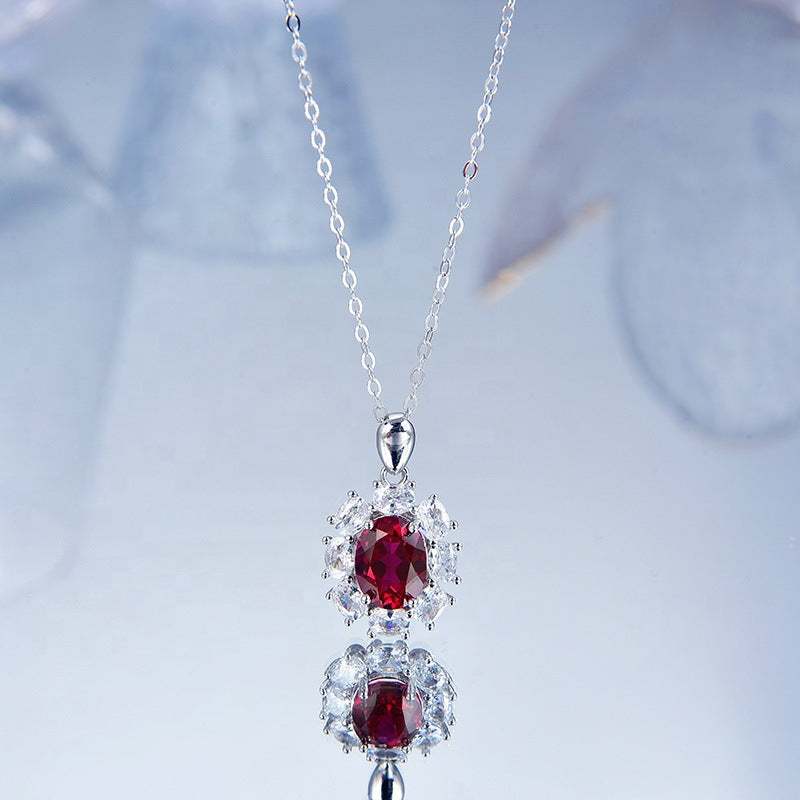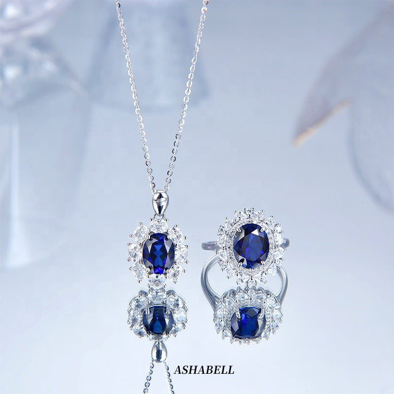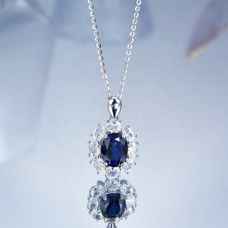 S925 Silver Necklace Women Sapphire Pendant Diamond Set